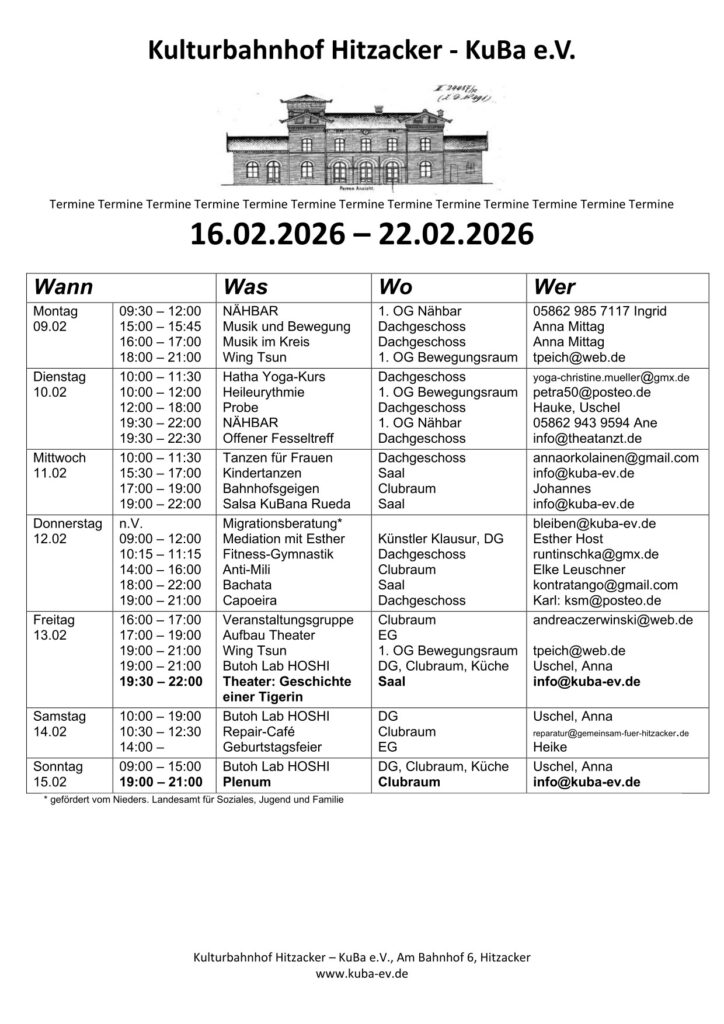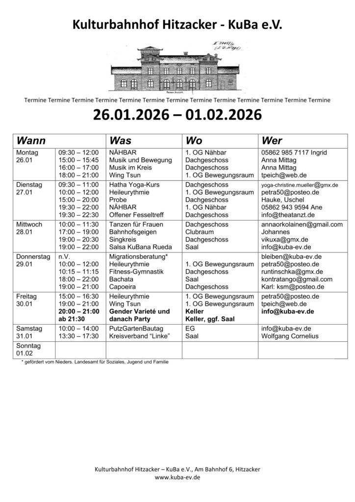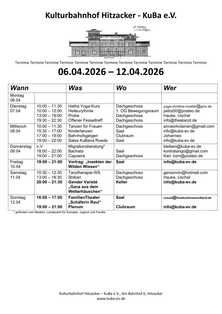 Wir sind ein Kulturverein im alten Bahnhofsgebäude des noch aktiven Bahnhofs in Hitzacker im Landkreis Lüchow-Dannenberg aka das Wendland.